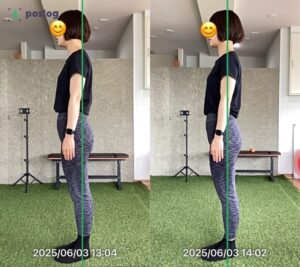 ①姿勢改善で身体の健康を目指しながら体重以上の見た目の変化を出します。