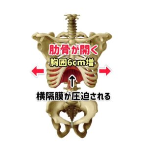 その影響で、肋骨は左右に広がるように開いた状態 になります。