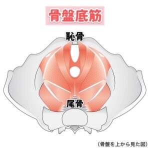 『骨盤底筋』はその名の通り、骨盤の底に位置し、恥骨から尾骨の間に広がる複数の筋肉群の総称です。